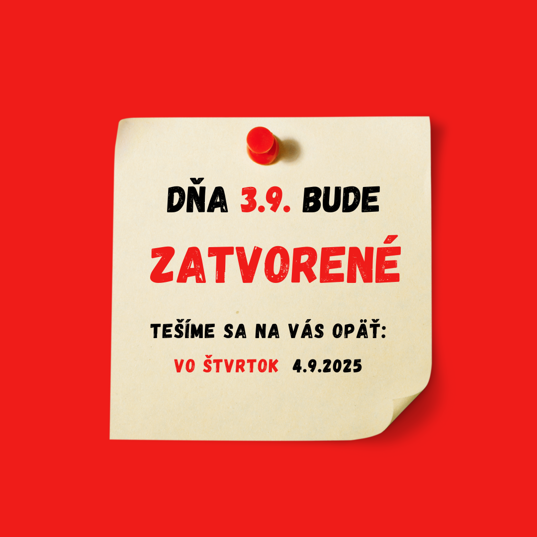 Tento oznam 3.9. sa vzťahuje len na predajňu Brezová pod Bradlom!