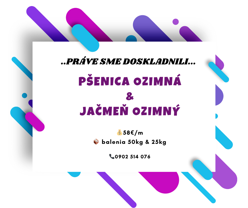 Oznamujeme Vám, že sme opäť doskladnili jačmeň ozimný a pšenicu ozimnú! Doskladnené len v predajniach Mútne 125 a Bobrov, Družstevná 507. Ponuka platí len do vypredania zásob!